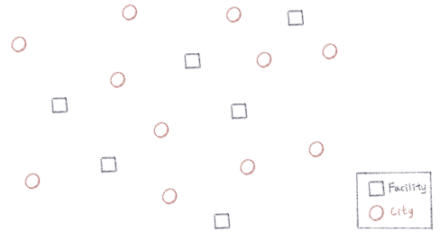 # Connect city j to the facility with the smallest distance